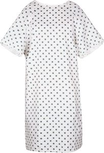 A loose, lightweight garment worn by patients in hospitals to ensure comfort, modesty, and easy medical access during examinations or treatment.
