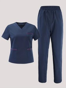 A set of simple, hygienic clothing worn by healthcare professionals, designed for comfort, easy cleaning, and maintaining a sterile environment.